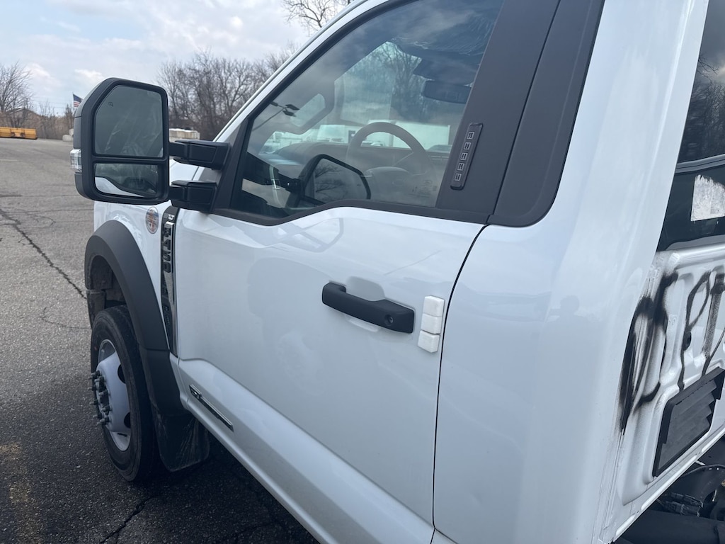 F-450 SuperDuty XLT is nicely equipped with GVWR: 16,500 lb Payload Package, Low Deflection Package, Order Code 653A, XLT Value Package (8-Way Power Driver's Seat, Autolock/Auto Unlock, Electrochromic Rear-View Mirror, Halogen Fog Lamps, Power Adjustable Pedals, Rear Window Defroster, Remote Start, and SecuriCode Driver's Side Keyless Entry Keypad), 350 Amp Dual Alternators, 4 Speakers, 4-Wheel Disc Brakes, 6-Ton Hydraulic Jack, ABS brakes, Air Conditioning, AM/FM radio, AM/FM Stereo w/MP3 Player, Brake assist, Bumpers: chrome, Cloth 40/20/40 Split Bench Seat, Compass, Delay-off headlights, Driver door bin, Driver vanity mirror, Dual front impact airbags, Dual front side impact airbags, Dual rear wheels, Emergency communication system: SYNC 4 911 Assist, Engine Block Heater, Ford Pro Upfit Integration System Removal, Front anti-roll bar, Front Center Armrest w/Storage, Front License Plate Bracket, Front reading lights, Fully automatic headlights, Heated door mirrors, Illuminated entry, Outside temperature display, Overhead airbag, Overhead console, Panic alarm, Passenger cancellable airbag, Passenger door bin, Passenger vanity mirror, Power door mirrors, Power steering, Power windows, Rear anti-roll bar, Remote keyless entry, Speed control, Steering wheel mounted audio controls, SYNC 4 Communications & Entertainment System, Tachometer, Telescoping steering wheel, Tilt steering wheel, Traction control, Trip computer, Turn signal indicator mirrors, Variably intermittent wipers, and Wheels: 19.5" x 6" Argent Painted Steel.