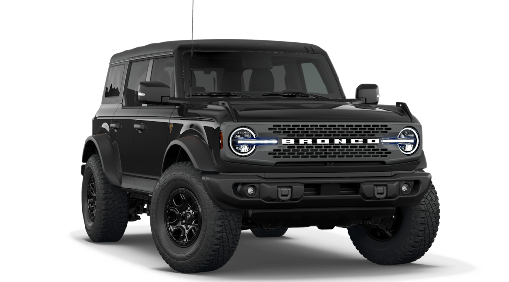 Bronco Badlands is nicely equipped with Black Appearance Package (Black Molded-in-Color Door Handles, Black Molded-in-Color Sideview Mirror Caps, and Black-Painted Molded-in-Color Grille), Equipment Group 334A Lux Package (2-Door Intelligent Access with Lock/Unlock, 360-Degree Camera, Adaptive Cruise Control, Ambient Footwell Lighting, Connected Navigation, Driver and Front Passenger Illuminated Sliding Visor Vanity Mirrors, Dual Smart Charging USB Ports, Dual-Zone Electronic Automatic Temperature Control, Evasive Steering Assist, Front Parking Sensors, Front Row Heated Seats, Heated Steering Wheel, Information on Demand Panel, Marine Grade Vinyl Heated Bucket Seats, Pro Power Onboard - 400W, Rear Parking Sensors, Sideview Mirrors, and Wheels: 17" Carbonized Gray-Painted Aluminum), Ford Connectivity Package (1-Year Included), Sasquatch Package (Front Stabilizer Disconnect, High Clearance Suspension, Position-Sensitive Bilstein Shock Absorbers, and Wheels: 17" Matte Black Alloy), 4-Wheel Disc Brakes, 7 Speakers, ABS brakes, Air Conditioning, Alloy wheels, AM/FM radio: SiriusXM with 360L, AM/FM Stereo, Auto High-Beam Headlamps, Auto High-beam Headlights, Auto-dimming Rear-View mirror, BLIS Blind Spot Information System, Brake assist, Compass, Delay-off headlights, Driver door bin, Driver vanity mirror, Dual front impact airbags, Dual front side impact airbags, Electronic Stability Control, Emergency communication system: 911 Assist, Exterior Parking Camera Rear, Front anti-roll bar, Front Bucket Seats, Front Center Armrest, Front fog lights, Front reading lights, Front Row Top Panels and Door Storage Bags, Front wheel independent suspension, Fully automatic headlights, Hard Top Sound Deadening Headliner, Heated door mirrors, Heated front seats, Illuminated entry, Integrated roll-over protection, Lane-Keeping System, Leather Shift Knob, Leather-Trimmed/Vinyl Bucket Seats, Low tire pressure warning, Occupant sensing airbag, Outside temperature display, Overhead airbag, Overhead console, Panic alarm, Passenger door bin, Passenger vanity mirror, Power door mirrors, Power steering, Power windows, Pre-Collision Assist with Automatic Emergency Braking, Radio data system, Rear-View Camera, Rear-Window Defroster and Washer, Remote keyless entry, Security system, Shadow Black Painted Hard Top, SiriusXM with 360L, Speed control, Split folding rear seat, Steering wheel mounted audio controls, SYNC 4, Tachometer, Telescoping steering wheel, Tilt steering wheel, Traction control, Trip computer, Variably intermittent wipers, and Voltmeter.