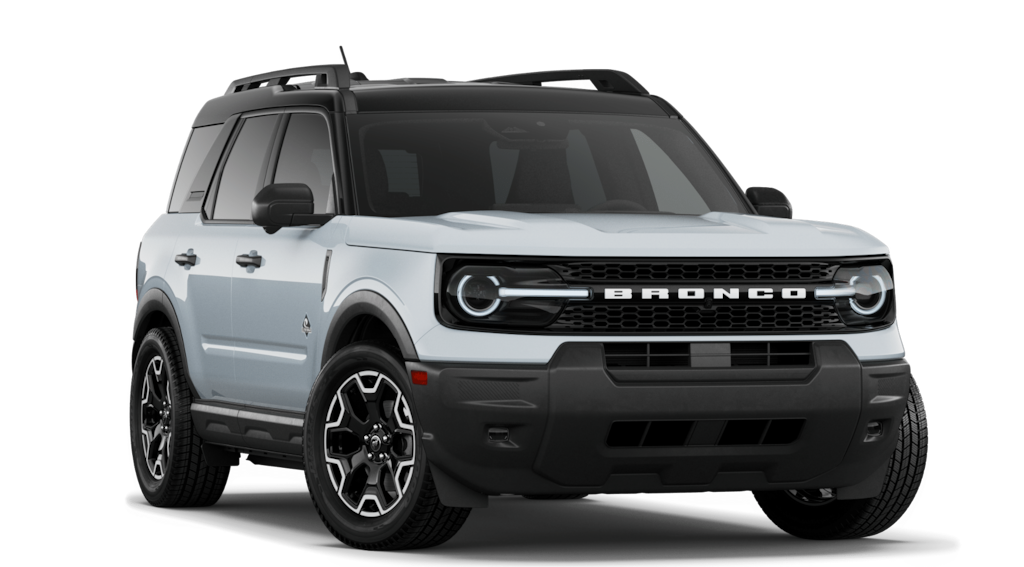 Bronco Sport Outer Banks is nicely equipped with Equipment Group 300A Standard Package, Ford Connectivity Package (1-Year Included), Internet access capable: 5G Modem - Ford Connectivity Package, Outer Banks Tech Package+ (Connected Navigation (1-Year Included) and Radio: HD w/B&O Sound System by Bang & Olufsen), 360-Degree Camera w/Trail View, 4-Wheel Disc Brakes, 6 Speakers, ABS brakes, Air Conditioning, Alloy wheels, AM/FM radio: SiriusXM with 360L, AM/FM Stereo, Apple CarPlay/Android Auto, Auto High-beam Headlights, Auto-dimming Rear-View mirror, Automatic temperature control, Brake assist, Compass, Delay-off headlights, Driver door bin, Driver vanity mirror, Dual front impact airbags, Dual front side impact airbags, Electronic Stability Control, Emergency communication system: SYNC 4 911 Assist, Exterior Parking Camera Rear, Four wheel independent suspension, Front anti-roll bar, Front Bucket Seats, Front Center Armrest, Front Driver/Passenger Seat Back Map Pockets, Front dual zone A/C, Front fog lights, Front Parking Sensors, Front reading lights, Fully automatic headlights, Heated door mirrors, Heated front seats, Heated steering wheel, Illuminated entry, Knee airbag, Low tire pressure warning, Memory seat, Occupant sensing airbag, Outside temperature display, Overhead airbag, Overhead console, Panic alarm, Passenger door bin, Passenger vanity mirror, Power door mirrors, Power driver seat, Power passenger seat, Power steering, Power windows, Premium Trimmed Htd Fr Sport Contour Bucket Seats, Radio data system, Rear anti-roll bar, Rear Parking Sensors, Rear reading lights, Rear seat center armrest, Rear window defroster, Rear window wiper, Remote keyless entry, Reverse Brake Assist, Security system, SiriusXM w/360L, Speed control, Speed-sensing steering, Speed-Sensitive Wipers, Split folding rear seat, Steering wheel mounted audio controls, SYNC 4 w/Enhanced Voice Recognition, Tachometer, Telescoping steering wheel, Tilt steering wheel, Traction control, Trip computer, Variably intermittent wipers, and Wheels: 18" Ebony Black-Painted Aluminum.