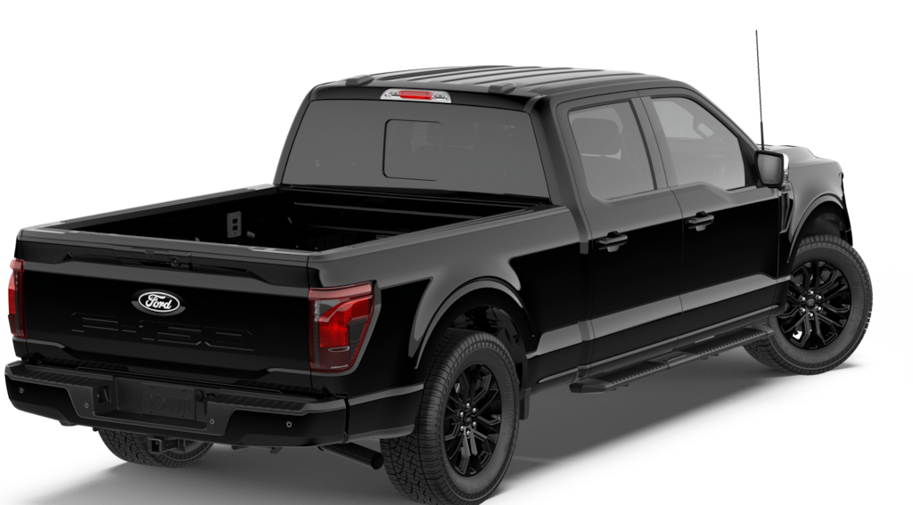 F-150 XLT is nicely equipped with Bed Utility Package (4 Pickup Box Tie-Down Plates, Bed Storage Boxes, LED Box Lighting, and Tailgate Step with Work Surface), Equipment Group 302A Mid (18" Painted Aluminum Wheels, 360 Degree Camera, 400W Pro Power Onboard (cab & Bed), Adaptive Cruise Control with Stop and Go, AEB Oncoming, Auto-Dimming Rear-View Mirror, Black Platform Running Boards, Body-Color Door Handles, Cloth 40/20/40 Front Seat, Dual-Zone Electronic Automatic Temperature Control, Ford Co-Pilot360 Assist 2.0, Front Parking Sensors, Heated Front Seats, Intelligent Access with Push Button Start, Power Glass Heated Sideview Mirrors, Power-Sliding Rear Window, Radio: AM/FM Stereo with SiriusXM 360L, Remote Start System with Remote Tailgate Release, SYNC 4 with Enhanced Voice Recognition, Towing Technology, and Wrapped Steering Wheel), Ford Connectivity Package (1-Year Included), Ford Connectivity Package (one-Time Purchase - 7 Years), FX4 Off-Road Package, Internet access capable: 5G Modem - Ford Connectivity Package, Tow/Haul Package, XLT Black Appearance Package Plus (6" Black Running Boards, Black Exterior Badging, Black Grille, Body-Color Front and Rear Bumpers, Dark Interior Appliques, Dual Exhaust with Black Tips, Floor Shifter, Gray Box Side Decal, and Wheels: 20" Gloss Black Painted Aluminum), 4WD, 4-Wheel Disc Brakes, 6 Speakers, ABS brakes, Air Conditioning, Alloy wheels, AM/FM radio: SiriusXM with 360L, Auto High-beam Headlights, Brake assist, Bumpers: body-color, Compass, Delay-off headlights, Driver door bin, Driver vanity mirror, Dual front impact airbags, Dual front side impact airbags, Electronic Stability Control, Emergency communication system: SYNC 4 911 Assist, Front anti-roll bar, Front Center Armrest, Front fog lights, Front reading lights, Front wheel independent suspension, Fully automatic headlights, Heated door mirrors, Illuminated entry, Low tire pressure warning, Occupant sensing airbag, Outside temperature display, Overhead airbag, Overhead console, Panic alarm, Passenger door bin, Passenger vanity mirror, Power door mirrors, Power steering, Power windows, Radio data system, Rear Parking Sensors, Rear reading lights, Rear step bumper, Rear window defroster, Remote keyless entry, Security system, Speed control, Split folding rear seat, Steering wheel mounted audio controls, Tachometer, Telescoping steering wheel, Tilt steering wheel, Traction control, Trip computer, and Variably intermittent wipers.
