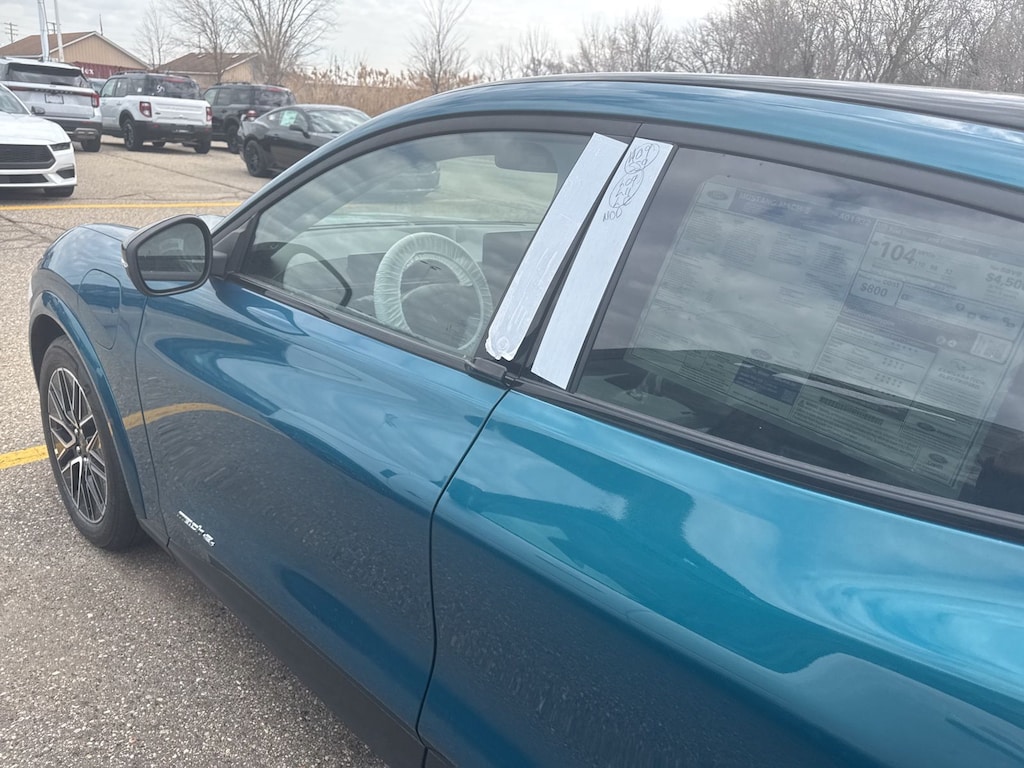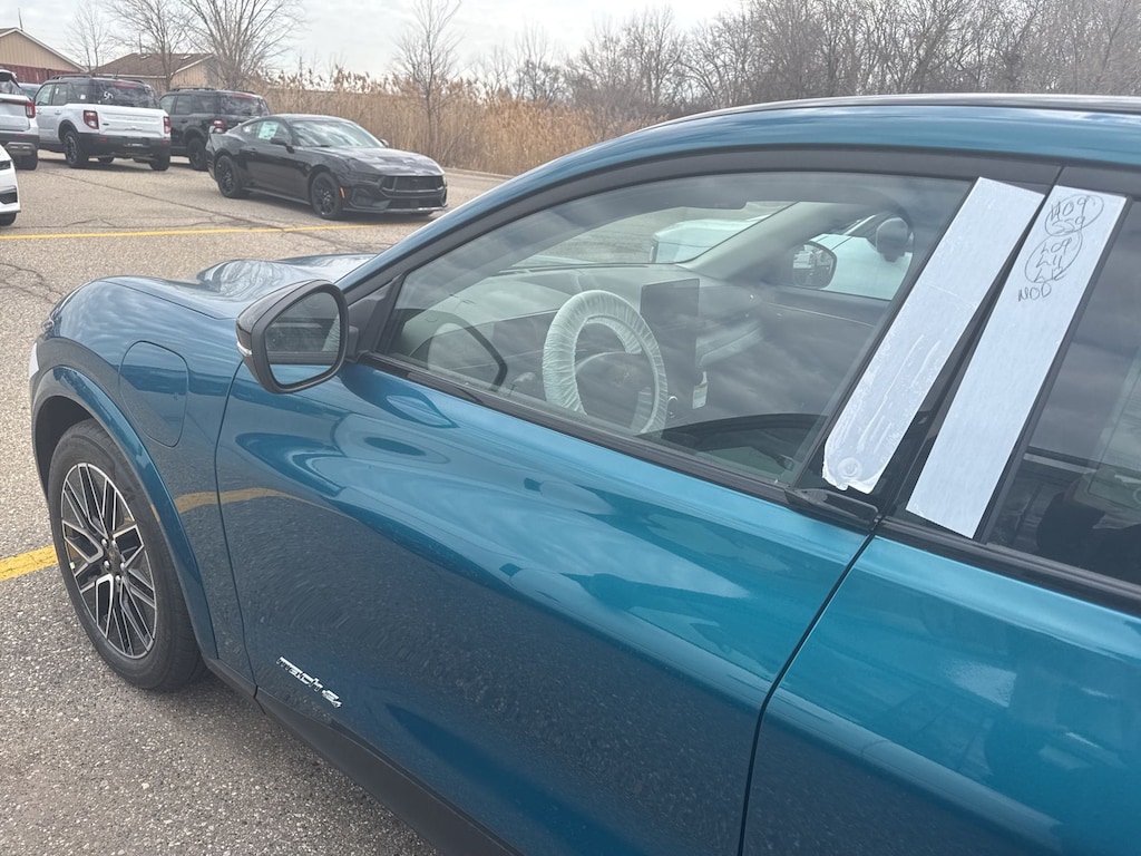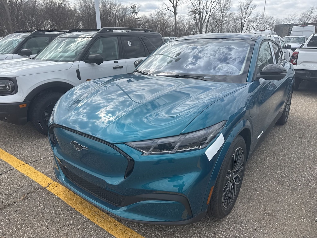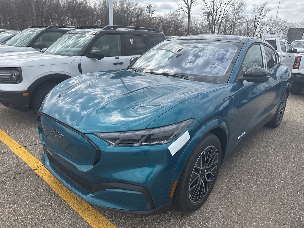 Mustang Mach-E Premium is nicely equipped with Equipment Group 300A Standard Package (Heated/Ventilated ActiveX Bucket Seats, Radio: B&O Sound System by Bang and Olufsen, SiriusXM with 360L, SYNC 4A with Enhanced Voice Recognition, and Wheels: 19" Bright Machined-Face Aluminum), Ford Connectivity Package (one-Time Purchase - 7 Years) (Audio and Video Streaming and Connected Navigation), Panoramic Fixed-Glass Roof Package, Technology Package (BlueCruise (equipment + 1 Year + 90-Day Plan) and Ford Co-Pilot360 Active 2.0), 10 Speakers, 4-Wheel Disc Brakes, ABS brakes, Air Conditioning, Alloy wheels, AM/FM radio: SiriusXM with 360L, Apple CarPlay/Android Auto, Auto High-beam Headlights, Auto-dimming Rear-View mirror, Automatic temperature control, Brake assist, Bumpers: body-color, Compass, Delay-off headlights, Drainable Frunk, Driver door bin, Driver vanity mirror, Dual front impact airbags, Dual front side impact airbags, Electronic Stability Control, Emergency communication system: 911 Assist, Exterior Parking Camera Rear, Four wheel independent suspension, Front anti-roll bar, Front Bucket Seats, Front Center Armrest, Front dual zone A/C, Front reading lights, Fully automatic headlights, Heated door mirrors, Heated front seats, Heated steering wheel, Illuminated entry, Knee airbag, Low tire pressure warning, Memory seat, Mobile Power Cord (120V/240V), NACS Fast Charging Adapter, Navigation system: Connected Navigation, Occupant sensing airbag, Outside temperature display, Overhead airbag, Overhead console, Panic alarm, Passenger door bin, Passenger vanity mirror, Power door mirrors, Power driver seat, Power passenger seat, Power steering, Power windows, Radio data system, Rain sensing wipers, Rear anti-roll bar, Rear seat center armrest, Rear side impact airbag, Rear window defroster, Rear window wiper, Remote keyless entry, Roadside Assist Kit, Security system, Speed control, Speed-sensing steering, Speed-Sensitive Wipers, Split folding rear seat, Spoiler, Steering wheel mounted audio controls, Telescoping steering wheel, Tilt steering wheel, Traction control, Trip computer, Turn signal indicator mirrors, Variably intermittent wipers, and Ventilated front seats.